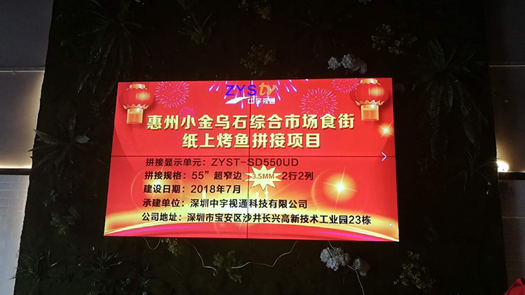 惠州小金口烏石綜合市場(chǎng)美食街紙上烤魚(yú)55寸拼接屏項(xiàng)目安裝調(diào)試完成并且順利驗(yàn)收!