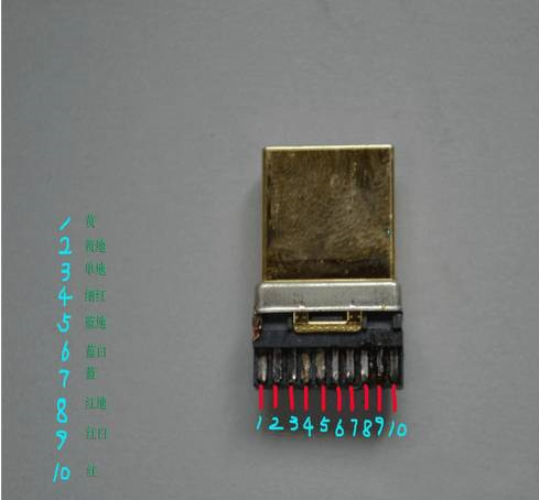 線序介紹1、HDMI線每個(gè)生產(chǎn)廠家不同,色序、焊接順序不同,下面以“深圳中宇視通科技有限公司”生產(chǎn)的“HDMI”線為主。HDMI線由19根線組成,如圖。
