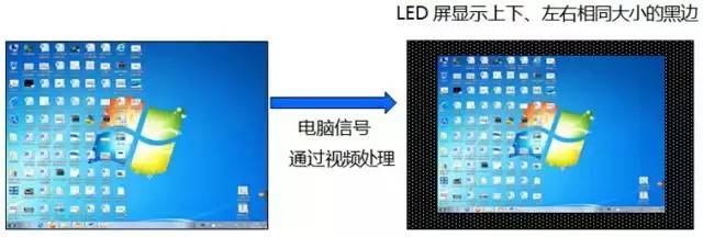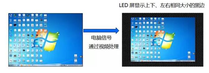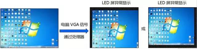1.選擇電腦輸入信號時(VGA,DVI或者HDMI等),處理器設置正確,但是電腦桌面圖像居中顯示在LED屏上,