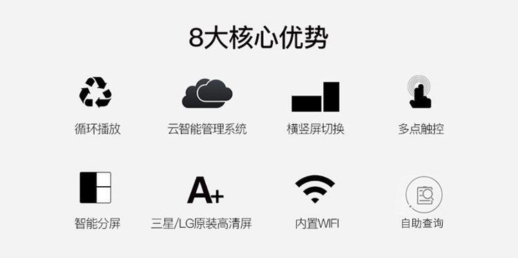 工業級電源系統,自帶恒溫散熱系統,可滿足24*7連續不間斷開機播放。