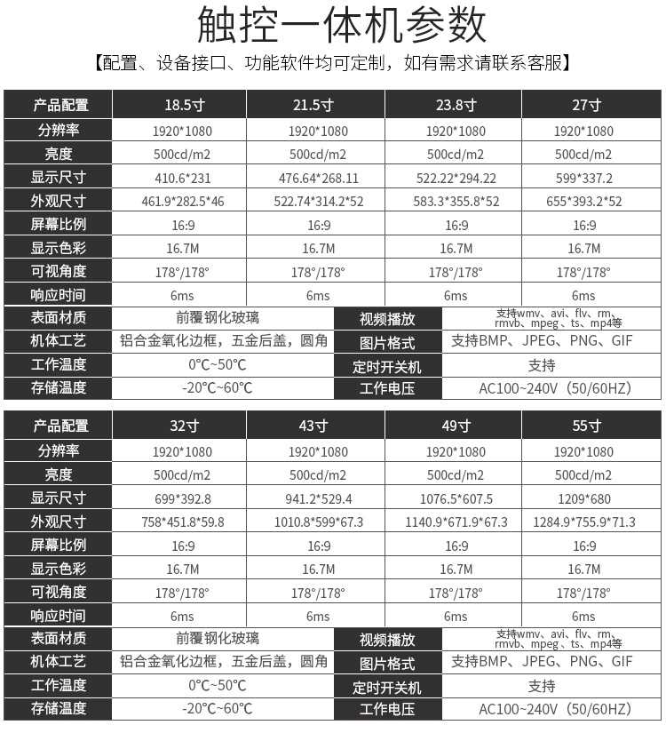 內置紅外觸摸屏,采用最新高精度觸摸技術、獨特電路設計、智能判定和紅外抗干擾等先進技術,穩定性強、響應靈敏;