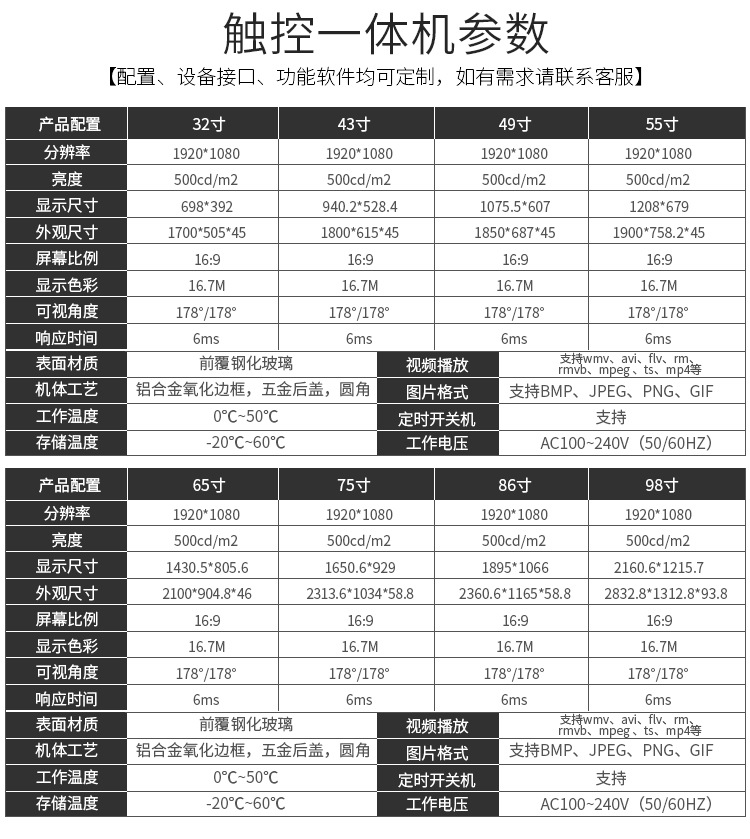 內(nèi)置紅外觸摸屏,采用最新高精度觸摸技術(shù)、獨特電路設(shè)計、智能判定和紅外抗干擾等先進技術(shù),穩(wěn)定性強、響應(yīng)靈敏。