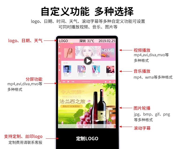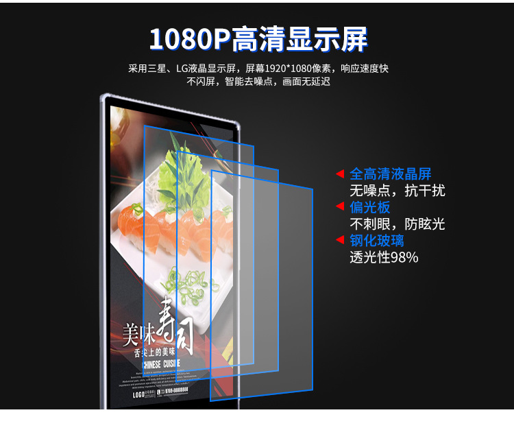 工業(yè)級電源系統(tǒng),自帶恒溫散熱系統(tǒng),可滿足24*7連續(xù)不間斷開機播放。
